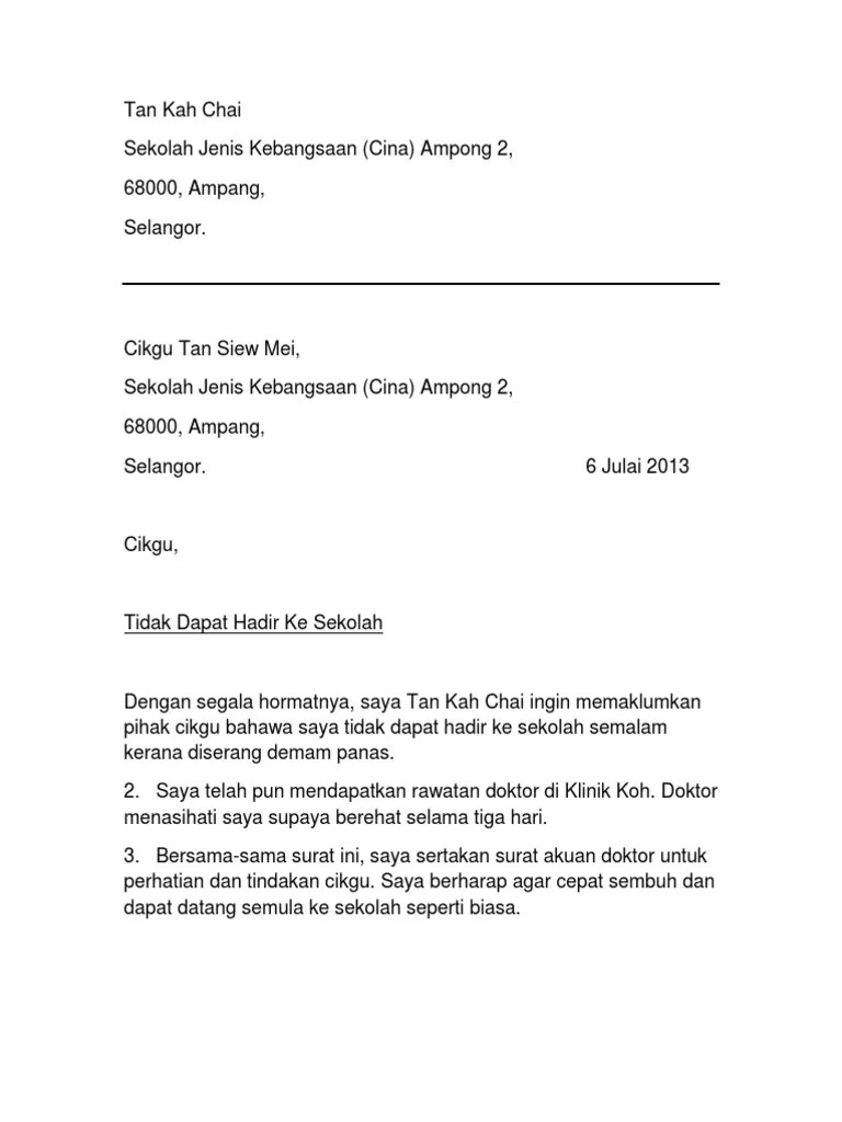 Contoh Surat Rasmi Tidak Hadir Ke Sekolah Kerana Sakit - Adi Channel